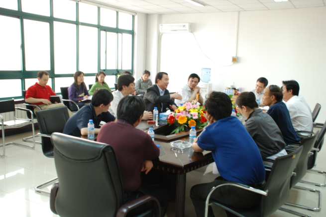 5月8日下午,中國中材集團(tuán)公司劉志江副總經(jīng)理、工程部劉建民部長等一行來天津市北辰科技園考察投資環(huán)境時,到中材節(jié)能發(fā)展有限公司檢查指導(dǎo)工作,與中材節(jié)能部分管理層成員以及部分中層人員進(jìn)行了座談。中材節(jié)能發(fā)展有限公司董事長張奇、總經(jīng)理何新平分別作了工作匯報。隨同劉總考察的還有中材集團(tuán)天津礦山公司段志春總經(jīng)理、南京礦山公司劉峰山總經(jīng)理、兗州礦山公司孔繁運(yùn)總經(jīng)理、西安工程公司朱發(fā)良總經(jīng)理等兄弟單位領(lǐng)導(dǎo)。