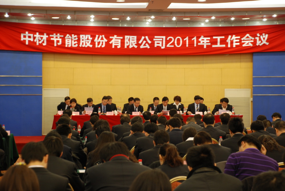 2011年1月23日,中材節能股份有限公司年度工作會議在北京九華山莊隆重召開。中材集團黨委常委、副總經理于國波,公司董事長張奇、總裁胡也明、黨委書記劉習德及其他班子成員出席會議。